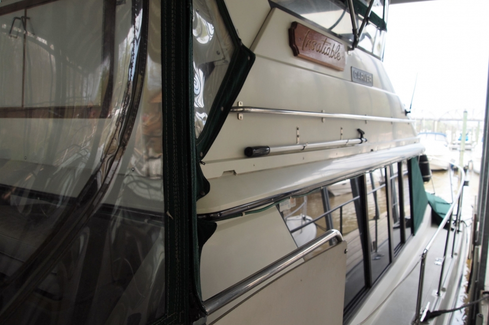 This very nice Carver 3807 Aft-Cabin Motor Yacht has twin inboard Mercruiser 7.4L/340 hp (1440 hrs) provide dependable power and handling under way, and while maneuvering in a marina. A Westerbeke 8kw generator provides ample power for all the conveniences of home.