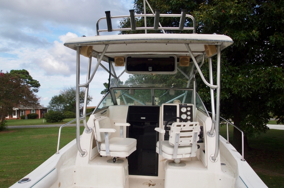 Equipped with freshwater cooled Mercruiser 5.7LX and Alpha outdrive, factory hard-top w/canvas enclosure, electronics, windlass, remote contolled spotlight, trim tabs, cabin with galley area, lots of tackle stroage, in-deck fish boxes with macerator, and an open cockpit for fishing.