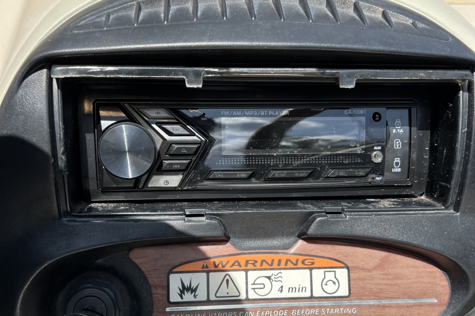 Includes bimini with canvas enclosure, digital depth finder, VHF radio, audio w/Bluetooth, cockpit cover, cockpit shower and snap in carpet.