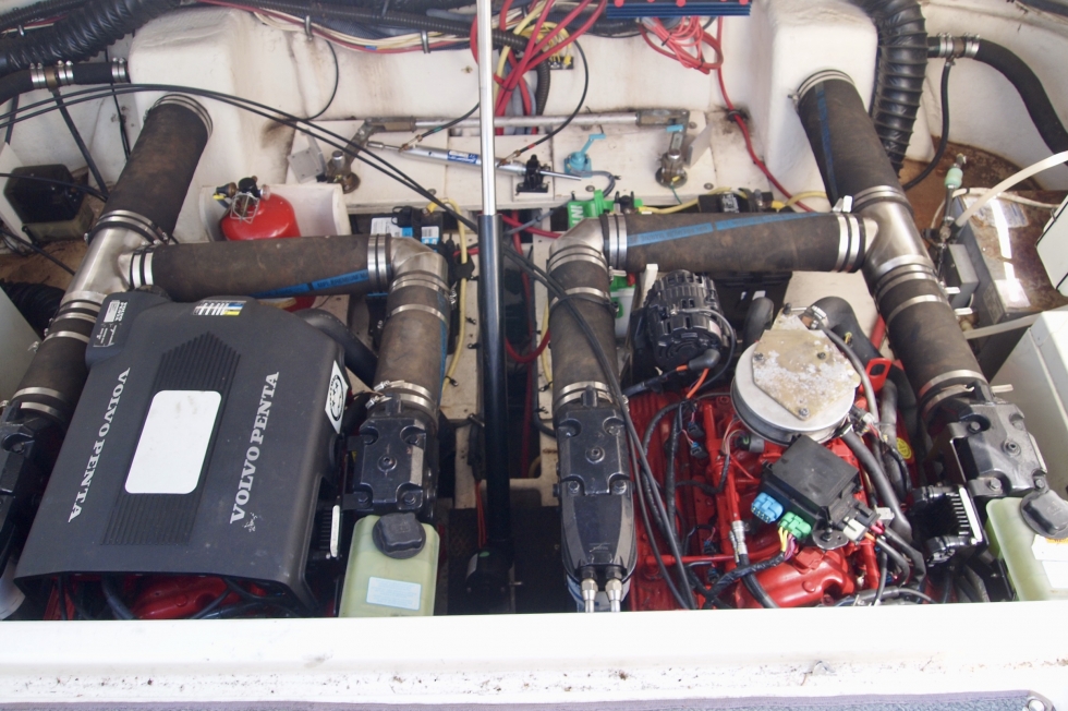 Equipped with twin Volvo VD 5.7 GXII-F (400 hours) , Kohler generator (345 hrs) w/sound box, Raymarine C80, Raymarine VHF, spot light w/remote, fire suppression system, new canvas in 2021.