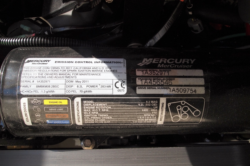 This beautiful 2011 Sea Ray 270 SLX with up-graded Mercruiser 8.2 MAG DTS 380hp (66hrs), Bravo 3, SmartCraft/SmartTow system, Sports Tower w/bimini, black hull & canvas, wet bar w/12V fridge, helm bucket seats w/flip-up bolsters, Sony audio system, and more.