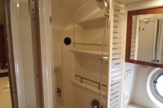 Descriptions • Cockpit wet bar with solid-surface countertop and refrigerator • Extra-large hull windows give interior an open, airy feeling • Pivoting double helm and port companion seats • SmartCraft Digital Throttle and Shift controls (DTS) • Hardtop • Electrically actuated engine access hatch • Foldaway transom seat creates aft-facing seating on spacious integrated swim platform • Flatscreen 26" TV with remote DVD player • Wide open, spacious cabin with abundant storage throughout • Large solid-surface galley countertop and abundant storage above and below • Water manifold system